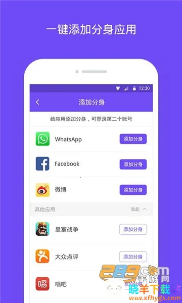 使用它很方便,打开软件同意协议后,点击主页添加分身,就能在众多应用中选择要多开的,一键清理后台还能加速手机运行。不管是工作还是娱乐,分身之间互不干扰。有了它,告别社交账户来回切换的烦恼,轻松领取各类应用的优惠,让你的手机使用更便捷高效,满足你多样化的需求。