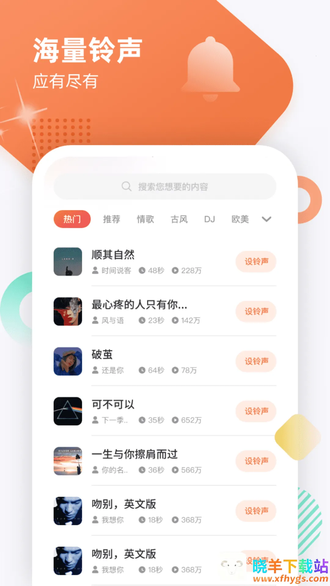 4、海量铃声可供选择,拒绝撞款,分类多样,酷炫萌宠风景等风格任你挑。