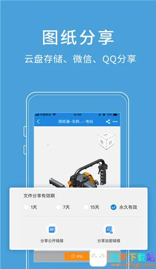 图纸通特色显著。**支持多终端同步**,一个账号可登录多个设备,登录后快速同步数据,换设备操作也不用担心数据丢失。**加密共享超安全**,重要图纸可加密共享,设置访问密码和有效期,确保文件安全。**项目创建与管理便捷**,能直接创建项目,添加成员,还可控制成员权限。**交互功能强大**,支持手机PC在线浏览多种图纸,提供丰富3D交互功能,方便查看和批注,大大提高工作学习与办公效率,是工业人员设计看图的得力助手。