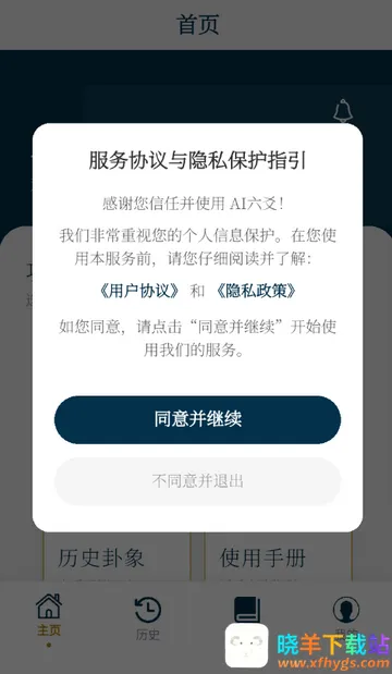 1、打开AI六爻app,点击同意隐私政策