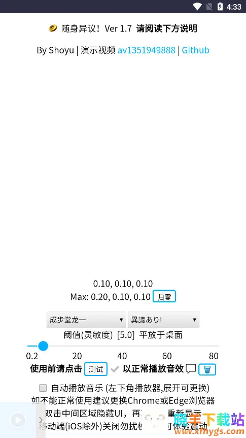 随身异议安卓版是一款充满趣味的娱乐软件。它能让安卓设备用户轻松体验独特的娱乐方式。其优势显著,**完美兼容各类安卓智能手机**,无需担心适配问题,所有安卓用户都能便捷下载使用。支持中日英等多语言模式自由切换,满足不同用户习惯,覆盖范围广。适用场景丰富,不管是游戏聚会的趣味互动,还是日常轻松娱乐,都能带来欢乐体验。还支持点击拍桌等多种触发方式,用户可随心选择,享受不一样的操作乐趣。内置自动播放音乐功能,搭配角色音效,烘托氛围,让娱乐更丰富。多语言和背景音乐很加分,玩起来超解压,是一款值得尝试的娱乐软件。