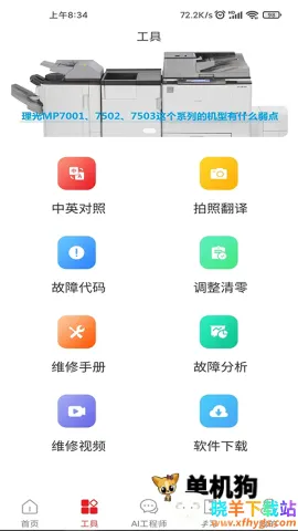 ofice奥菲斯最新手机版特色显著。它支持多种设备在线维修申请,操作简便易上手。能完全满足维修需求,使用起来极为方便。其功能强大,首页就能清晰看到几乎所有所需维修服务。无论是查询办公设备维修手册,获取高质量维修学习资源,查询故障代码,还是进行拍照翻译等,都能轻松实现。而且平台一直在努力开发新功能,不断优化,如v3.0.8版本修复已知问题、优化功能、增加搜索记录,为用户带来更好体验,是维修人员的得力智能助手。