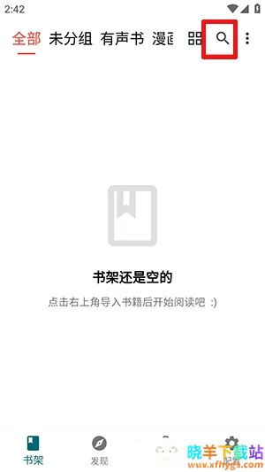 3、点击书架板块,点击右上角的搜索功能。