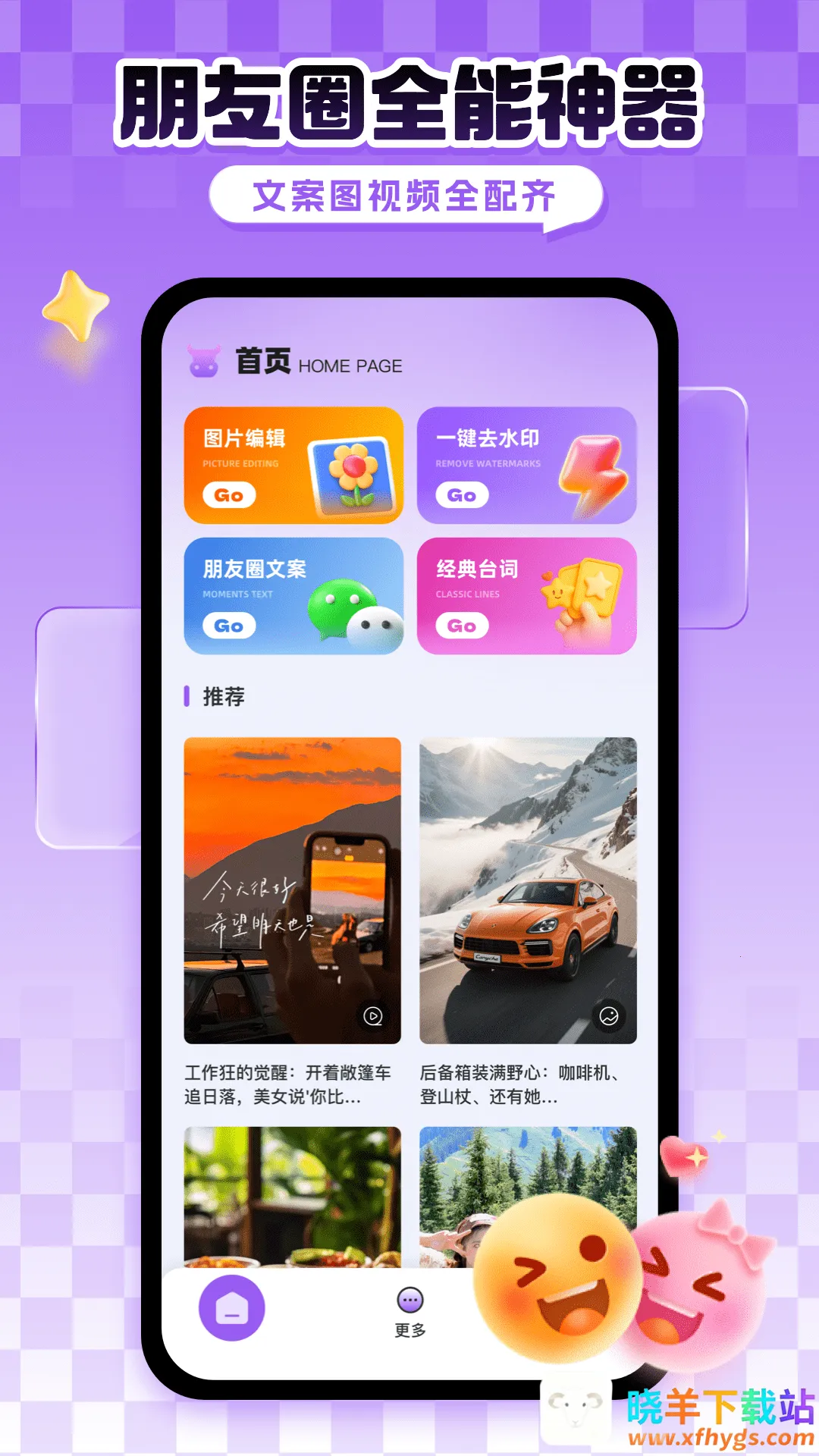 你是否为发朋友圈文案而烦恼?想拥有独特又吸引人的社牛朋友圈文案短句?这款社牛朋友圈文案编辑创作助手应用软件绝对能帮到你!它功能超丰富,支持文案创作,能让你轻松简单地创作出适合不同场景的朋友圈文案。这里有海量文案,涵盖各种风格,满足你的多样需求。还有丰富多元的经典台词可随心查阅,多场合台词实时掌握。在故事圈文化板块能精选故事素材,随心创作暖心故事文案。追星一族看过来,它搭配追星弹幕器,帮你创作贴合应援的文案。软件用途广泛,日常记录、抒发感情都适用。免费下载各种素材图片和视频,还不断更新新颖内容。多风格适配,实用性强,提供文字、图片、视频等多种素材。有了它,发朋友圈再也不愁没好文案啦,赶紧来本站下载使用吧!