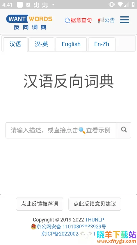 想要一款能从独特角度帮助查找词语的工具吗?它能让你在不同场景下顺畅沟通,避免词不达意。从反方向出发,已知传统意思就能反推另一个意思。使用起来也很便捷,在本站下载安装后,在搜索框输入字词,类似词语、句子等就会出现,还能通过筛选器调节搜索内容。随便点一个词语就有相关解释、拼音等。它能辅助学习,设立学习目标、复习单词,还有丰富图表图文。词库权威,包含多种词典类型,词语解释详细,手机查询方便快捷。每位用户都能轻松搜索到各类词汇并理解,还能切换翻译模式,信息精准,满足各种搜索需求。