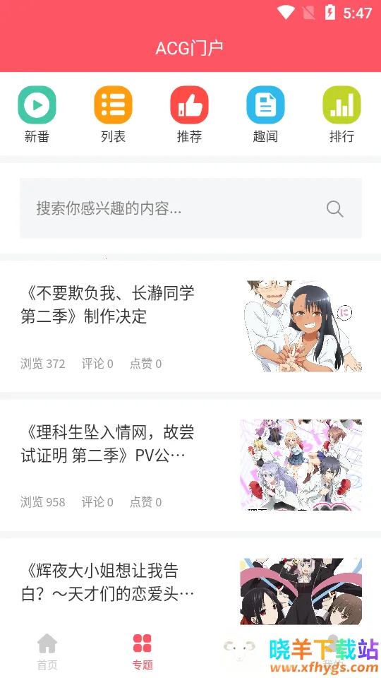 ACG 门户最新手机版特色丰富。它为动漫爱好者提供全面资讯,涵盖各类动漫作品,满足多元追漫需求。拥有海量高清二次元壁纸,创新照片墙展示,多维度分类检索,方便找图设壁纸。强大搜索引擎,支持模糊匹配与联想,快速定位相关内容。ACG 资源站论坛汇聚百万爱好者,图文混排发帖交流。一键分享至主流社交平台,还能生成推荐卡片。此外,还有搜索、收藏、阅读历史、评论互动等功能,让用户畅享动漫世界。