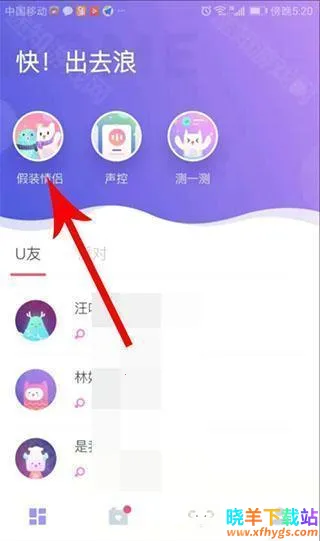 1、来到uki app主页面后,点击左上角的"假装情侣"。