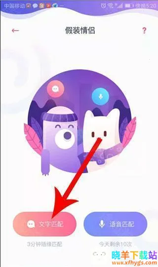 2、进入到"假装情侣"界面,点击"文字匹配"按钮。