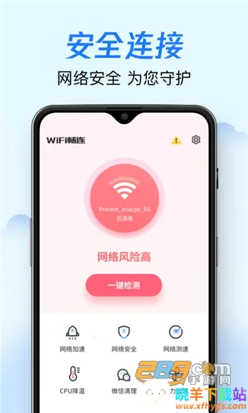 WiFi畅连神器是超实用的网络连接管理软件。它能时刻检测网络安全,极速畅连附近免费WiFi,还可检测联网设备,防止他人蹭网。其优势众多,能对连接的WiFi进行安全检测,让用户了解安全性。可带来独特使用体验,使手机连上更快WiFi网络。还能分享已连WiFi给朋友,无需密码。无论何时何地,都能满足上网需求,降低延迟,提高网络稳定性,一键管理WiFi连接,清理手机垃圾,释放内存,是上网的得力助手。
