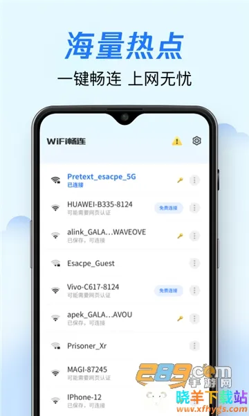 WiFi畅连神器是实用的手机网络连接管理软件,能检测网络安全,极速畅连附近免费WiFi,可防止蹭网、加速网络。还能一键管理WiFi连接、清理垃圾,查看周边网络,分享WiFi,满足日常需求。