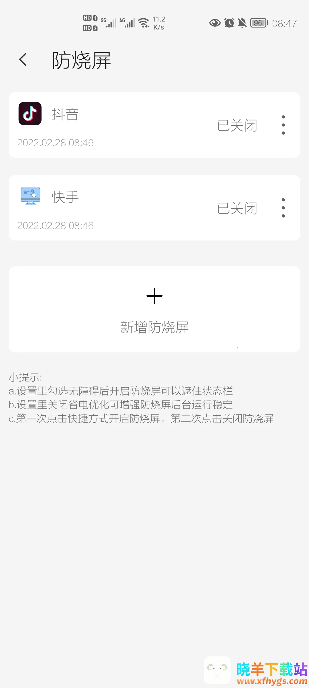 屏幕工具箱2025下载安装特色显著。它基于悬浮窗原理设计,操作简单。包含防误触、防烧屏、全局水印三种实用功能。防误触可自定义悬浮窗遮挡误触区域,提升游戏等场景体验;防烧屏能在特定短视频前启动阴影悬浮窗,降低烧屏风险,还支持自定义添加其他应用防烧屏;全局水印允许用户自定义文字水印,用于截图或录屏的版权保护。而且应用无需网络,数据存于手机,多样功能集合,方便用户随时保护手机屏幕。