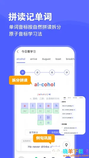 3. 智能拆分:字母音标对照表单词音节结构分析,助于理解记忆。