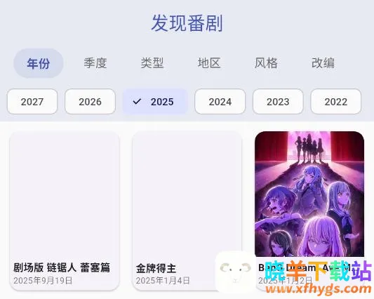 2、发现番剧可以根据自己的喜好来进行挑选,比如类型、季度、地区、风格等。