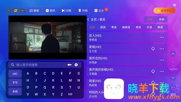 3、用户可以通过分类,歌星,歌名等方式进行筛选。
