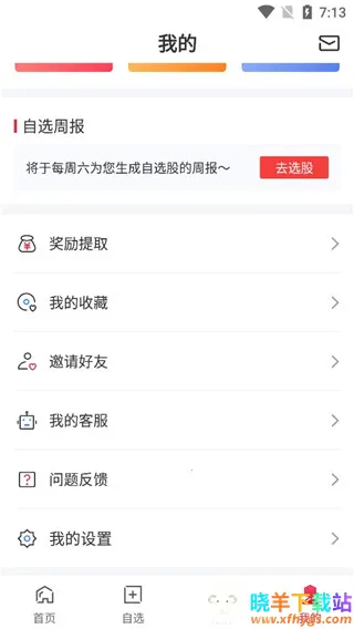 2、软件提供了四大主要板块、分别是首页、自选、行情以及我的管理。