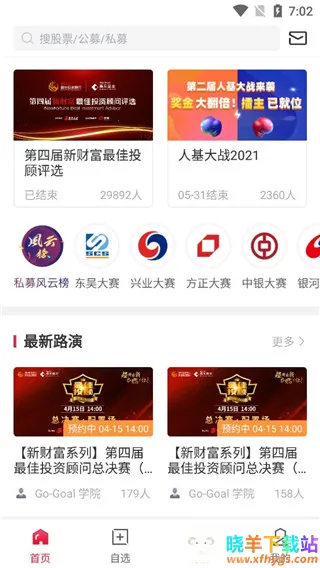 3、在【首页】板块中,我们可以了解各种财经要闻以及新闻资讯,或是直播观看大赛,查看路演等等。