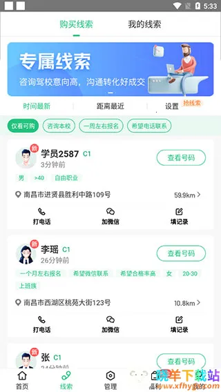 2、在线索页面,可以查看最新学员的报名线索;