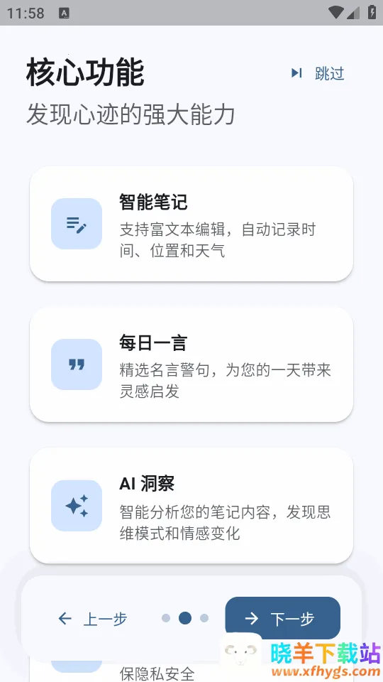 心迹ai笔记是一款接入最新ai功能的笔记工具,是专属灵感摘录本。支持富文本编辑,自动记录时间、位置和天气,有ai洞察功能,能智能分析笔记。完全免费,开源安全,功能全面,还不断更新优化。