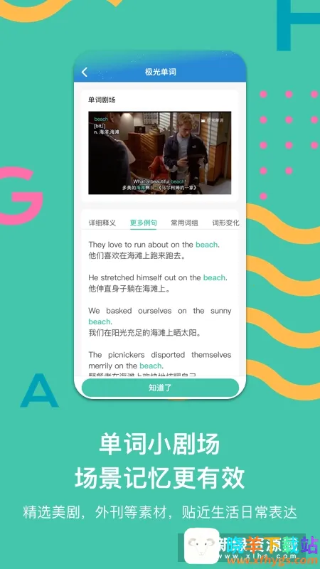 极光单词是一款备受欢迎的英语学习软件。它拥有海量词库,涵盖小学到职场等各个阶段,无论你是学生还是职场人士,都能在这里找到适合自己的词汇。其创新的笃局场景记忆模式,让背单词变得更有趣、更有效。通过真实语料,如精选的经典美剧、外刊等学习素材,还有单词视频小剧场,结合电影配乐和图片,帮助用户灵活学习。