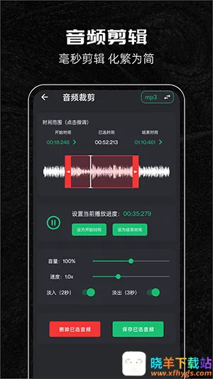 3、裁剪方式很优质:可依据自身需求对相应音频片段进行裁剪,操作简单准确。
