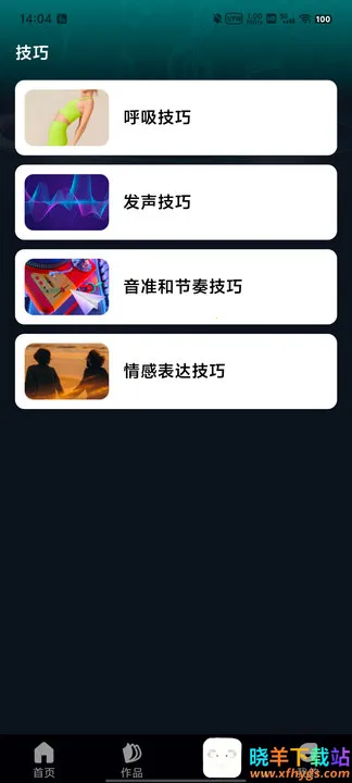 4、其次软件中还提供了,技巧教程,如图所示,其中包括了呼吸技巧、发声技巧、音准和节奏技巧、情感表达技巧。