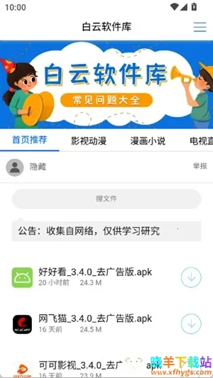 白云软件库是一款整合众多优质资源的线上搜索软件。它提供的资源精挑细选且正版授权,涵盖影视、小说、漫画等多种类型。分类精细,能让用户快速筛选使用。更新频率快,热门排行榜及时推送。注册登录便捷,输入手机号一键登录。