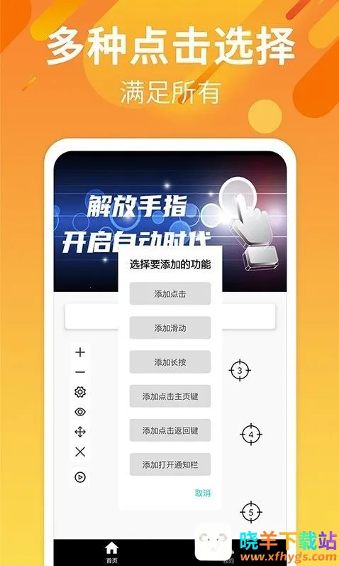 自动点击连点安卓版手机版特色显著。它支持自定义脚本设置,能轻松设定点击位置、速度、时间和次数,满足多样需求。可通过浮动控制面板启动或结束自动点击,随时调整操作。创建好的脚本可随时修改、编辑,支持快速复制,方便多次使用。还能添加多个脚本,满足不同场景连点需求,提升效率。无论是购物抢购、游戏挂机,还是重复工作场景,都能发挥强大作用,让操作更便捷高效。
