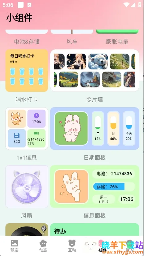 4、实用功能丰富:支持将壁纸一键分享至主流社交平台,还内置多种实用小组件,如灵动电量显示、喝水提醒、照片墙等,同时提供便捷收藏功能,让手机管理更高效,方便打造专属手机桌面。