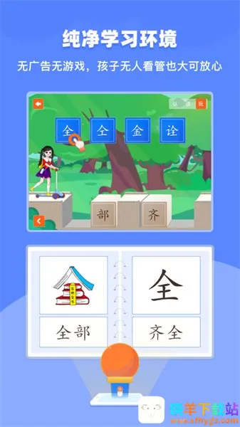 海量词汇:领先业内的词库,包含1580个部编版汉字及3160个拓展词语,全面覆盖小学一二年级语文教材内容,助力孩子全面系统地识字认字。