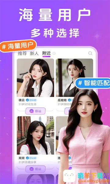 附近思夜是专注同城单身社交的实时互动平台。它能帮用户快速遇见附近缘分,实现高效社交闭环。平台汇聚海量活跃用户,支持多元互动方式,打造安全便捷交友环境。这里有海量单身好友,不用担心遇不到真爱,更好实现同城实时交友。好友皆认证过,可放心交友,提高脱单率。能实时更新线上好友,回复快捷,满足交友需求。依据用户信息和位置高效匹配,还有多种互动功能,保障社交安全,营造活跃氛围,让你轻松交到有趣的人。