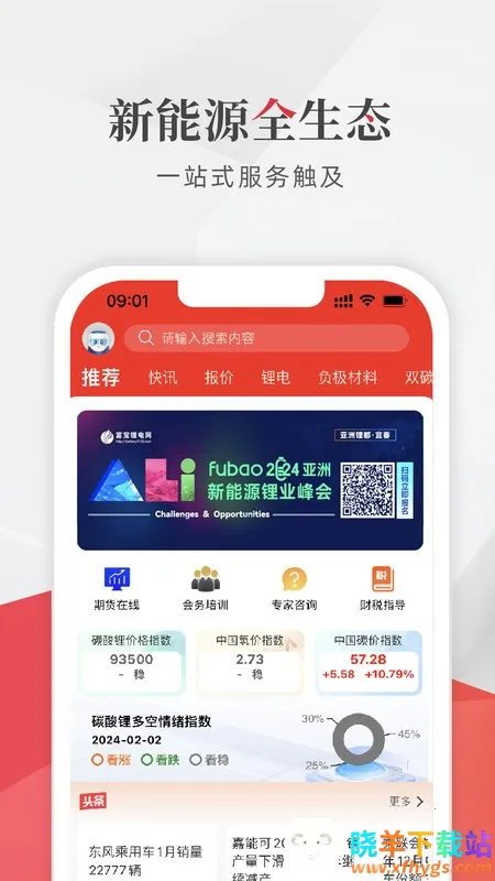 富宝新能源是富宝资讯推出的软件,为新能源锂电氢能双碳领域提供产业资讯服务。涵盖报价、供需、报告等,有快讯、期货在线等功能,还能获专家咨询、财税指导,助力掌握行情与办公决策。