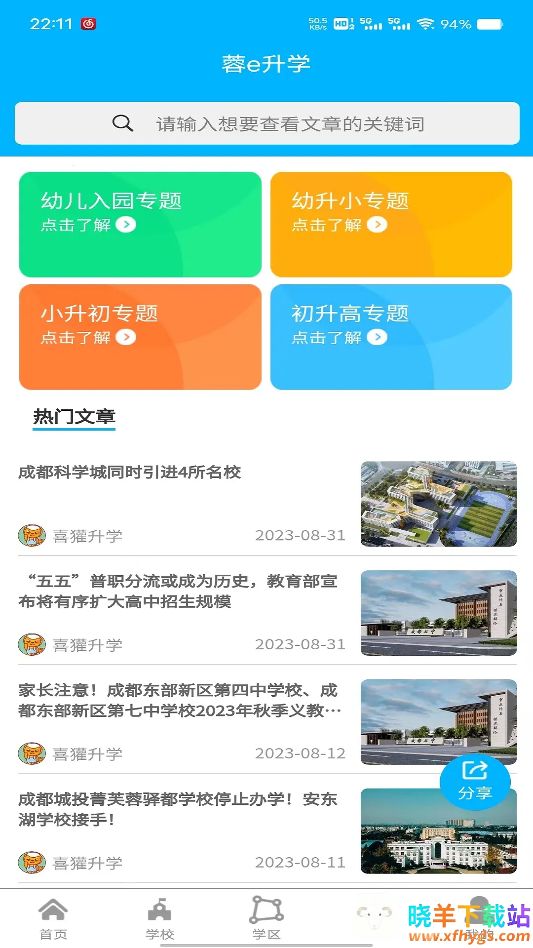 蓉e升学是专注成都地区K12教育阶段的平台。其特色显著,**本地化政策解读**联合主管部门实时更新入学政策,精准解读片区划分等。智能选校评估基于多维度算法推荐合适学校。学业成长追踪记录学生表现,生成发展曲线与薄弱环节分析。家校互动桥梁搭建便捷沟通渠道。还有入学概率预测、政策变化预警等亮点。能为家长提供科学决策支持,助力孩子升学,是成都家长的贴心之选。