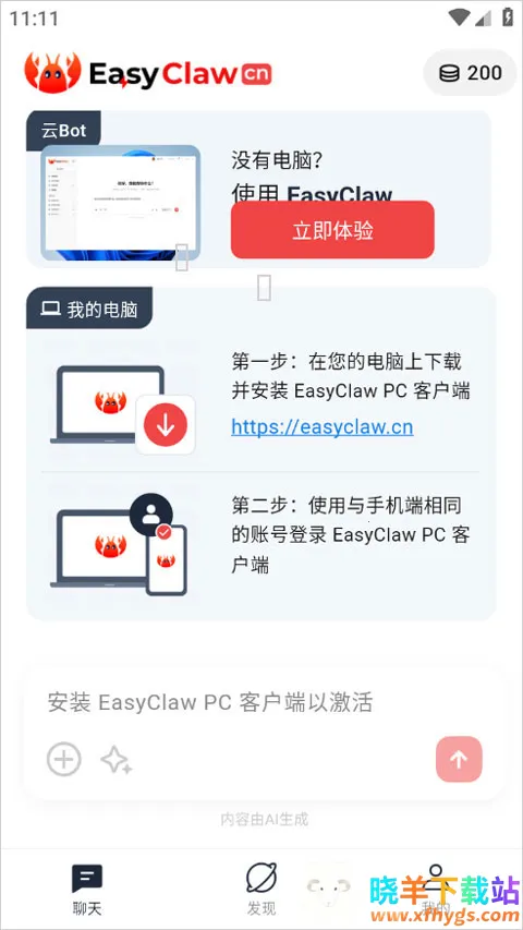 2、登录以后,我们可以按照提示,在自己的电脑设备上安装EasyClaw PC客户端,然后登录与手机版同一个账号,即可实现远程下达指令;