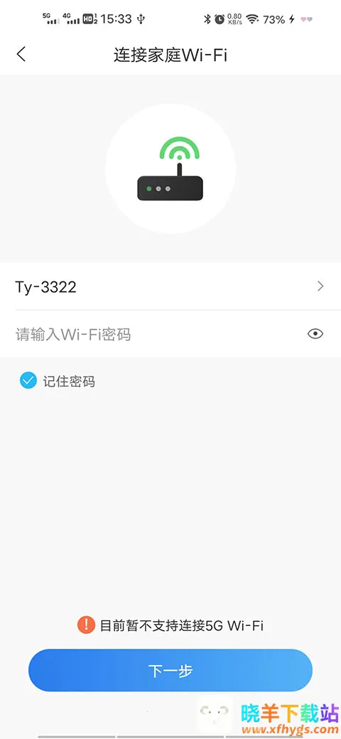 5、该软件暂时不支持5GWi-Fi,因此需要用户输入Wi-Fi密码,然后点击下一步。