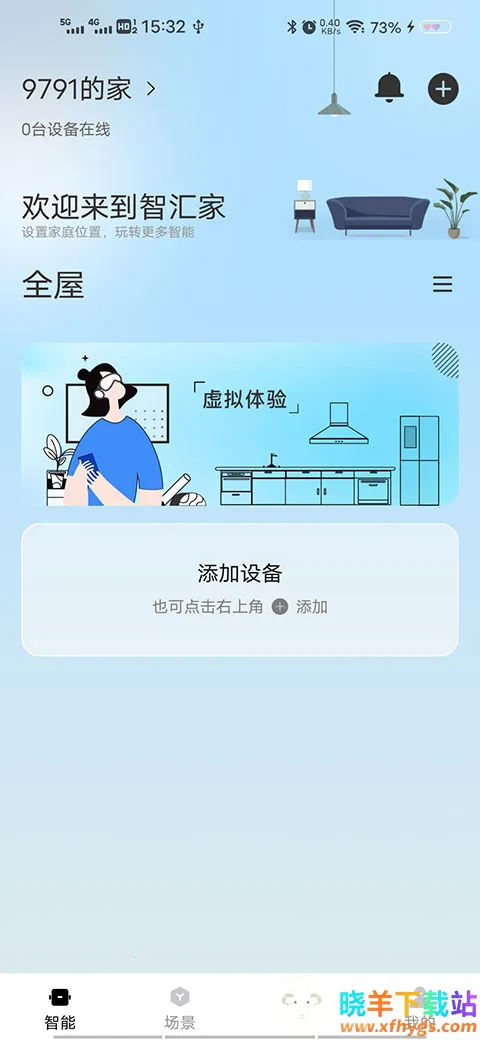 1、下载安装好app之后打开进入,在首页中选择添加设备,或者是点击右上角的加号进行添加。
