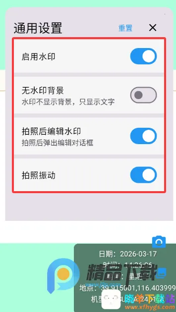 2、在通用设置中可以选择是否启用水印