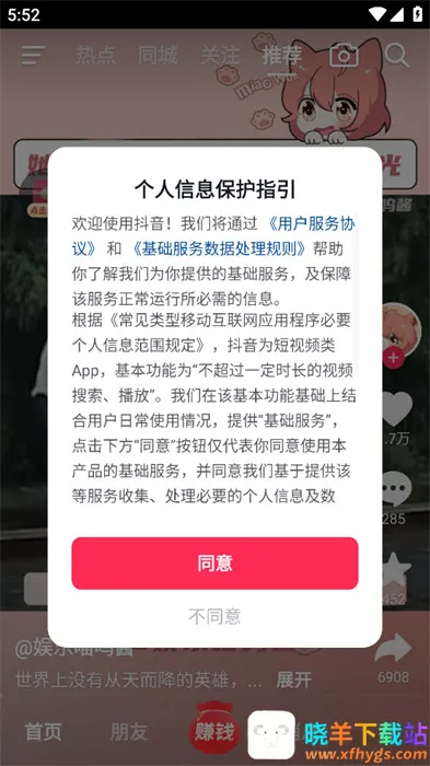 1、打开软件之后,阅读隐私政策和用户协议,点击同意就能进入软件