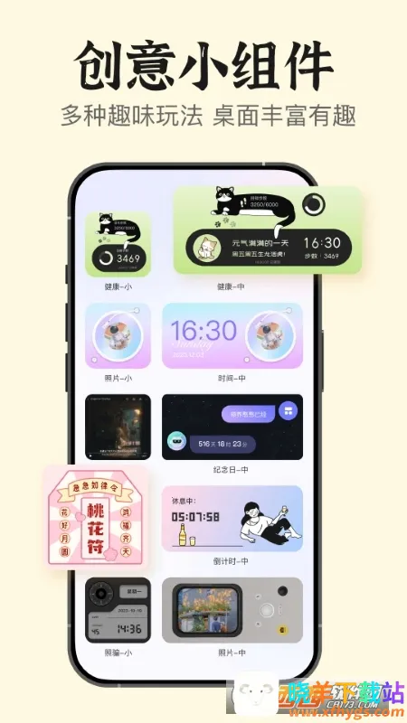 想让手机桌面更具个性与美感吗?桌面小组件软件就能满足你对“桌面小组件图片素材”的需求!它是一款超棒的桌面美化软件,功能超丰富。能添加炫酷时钟、偶像照片、文字图片、倒计时、纪念日、快捷方式、计步、天气等各种元素,你可以自由组合设计,打造专属屏幕。小组件风格多样,简约、复杂、粉嫩等各种风格任你选,界面操作简单易上手。有倒计时插件记录重要日子,天气插件实时同步当地天气,事件插件提醒重要纪念日,壁纸插件彰显品味。还能自定义照片壁纸,让手机桌面如艺术品般精美。通过简单几步操作,就能轻松为桌面添独特组件,让手机使用更便捷,快来下载,打造属于你的个性桌面吧!