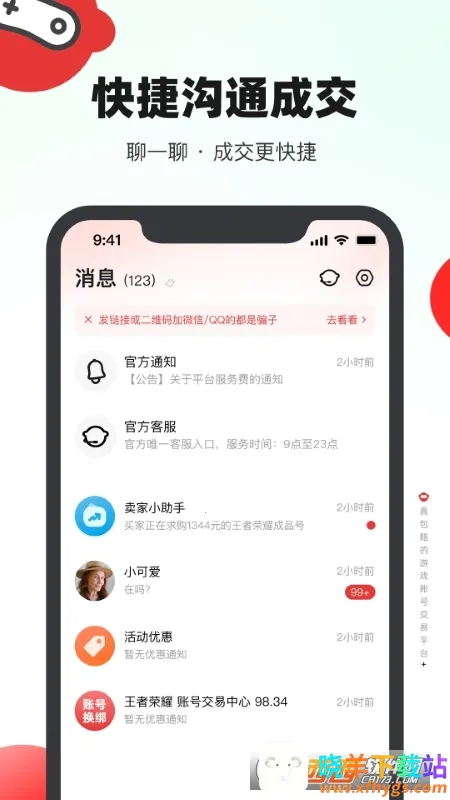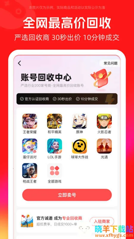 这是一款专注于游戏账号买卖交易的平台,提供安全透明快捷的账号交易服务。它涵盖市面上绝大部分手游交易,上百万游戏账号任你挑选。其优势众多,闲置账号可放心上架交易,并为买家提供账号找回永久包赔,能帮玩家快速出手闲置账号,实现更高收益。不想自己处理账号发布的话,还能托管代卖。平台对交易严格把关,确保安全合法,支持多种支付方式保障资金安全。有着强大的数据筛选和搜索功能,能快速找到心仪账号,内置评价系统和举报机制保证账号质量与交易公正性。在这里,玩家无需担心账号交易安全问题,可轻松达成交易,是游戏玩家账号交易的不错选择。