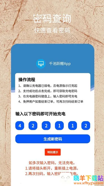 千池跃鲤安卓版手机版是专注移动设备充电服务的智能应用。能轻松租共享充电宝,解决电量焦虑。按天计费,功能智能,含电池检测等。还有客服支持、开放加盟,注册简单,定位精准,计费透明,体验良好。