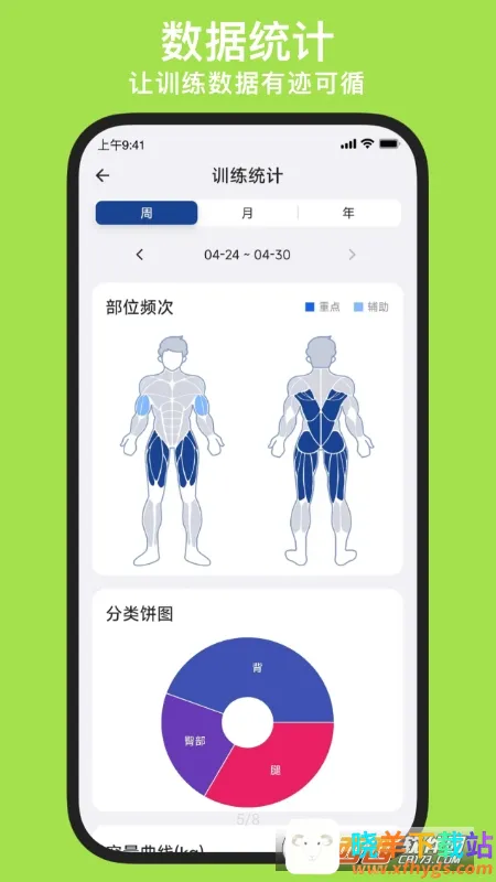 2. 全面数据记录:可完整记录体重、体脂、体围等身体数据,以曲线图形式展示,方便随时查看健身变化;还能记录每次训练内容,提供统计数据,清晰呈现成长与改善。