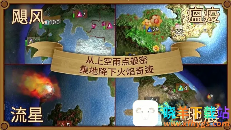 内置菜单超方便。比如能自行操控自然灾害,借助天灾攻击敌人,不过要留意天灾移动路线与方向。还能观察敌方部队,依实力制定作战计划。能增加信徒数量,提升科技等级,丰富的成就系统等你达成。农业生产可提前布置,维持运营积累资源。