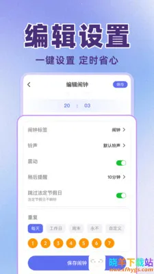 1. 一键设置,定时省心。编辑设置轻松搞定,让你无需繁琐操作就能快速设定闹钟,开启省心定时之旅。