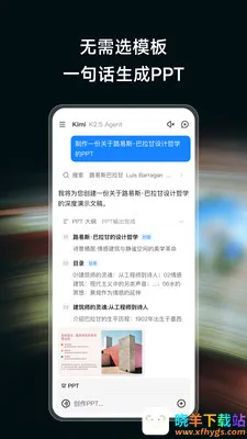 Kimi是一款功能强大的智能应用。它能帮你做很多事情,比如一键解锁个人云端智能体,支持724小时定时任务与深度长期记忆,能自动抓取资讯整理资料,还可全自动接管复杂工作流。在办公方面,它精通Office,支持多种格式无损互转,具备专业处理能力。视觉编程上告别代码门槛,对话即开发,能精准识别视觉细节生成代码。数据专业分析可深度剖析大型数据集并生成报告。辅助创作能提供灵感写出有温度的文字,还能一键生成专业PPT。深度搜索整合全网信息提供精准来源。高效阅读可秒速读完长文提炼摘要。专业解读多种格式文件,整理资料提取关键信息,拍照答疑解决难题。它能让你从繁重工作中解放出来,提升效率,增强能力。