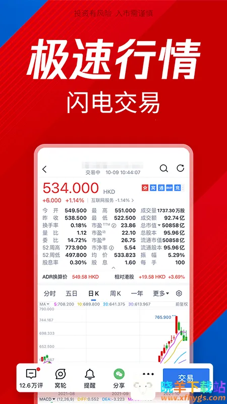 4. 股价提醒及时把握买卖时机:用户可事先设置股价提醒,包括涨跌上下限及日涨跌幅最大值,数据超限额时触发提醒,助您第一时间决策。