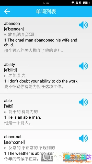 2. 涵盖四级考试所有常考词汇,支持按英文或中文意思查询单词释义,便于考生随时学习和巩固词汇,丰富词汇储备。