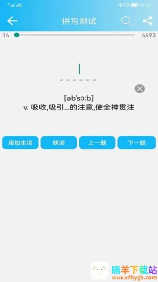 如果你想知道英语四级单词量需要掌握多少,那这款英语四级单词软件能帮到你。它收录了四级考试要求的全部词汇,共3660个高频词汇呢。软件功能超丰富,有多种单词记忆方式,比如按顺序、随机、按字母背诵,还能加入生词本重点记忆。单词采用短语与例句相结合的场景化记忆模式,配合语音朗读,让你记得更牢。通过中英测试、拼写测试等,能加深单词记忆。还有单词复习功能,错题会自动加入错题集合,复习更便捷。它涵盖400多组词组、500多组重点句型,满足四级考试需求。双语阅读、四级真题、听力训练等功能也很实用,在商务、新闻、面试等多种场景下练习听力,提升阅读能力。有了它,能帮你轻松掌握英语四级词汇,有效备考,轻松应对四级考试,让你不再为单词量发愁。