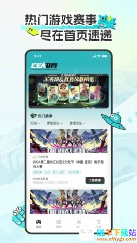 CEA电竞是厦门丰创在线科技有限公司为电竞爱好者打造的专业资讯平台。在这里,你能获取最新电竞赛事信息,关注各大俱乐部动态,了解行业资讯。平台支持玩家组建自己的战队,和朋友一起参加各类电竞赛事,满足对电竞的多样需求。