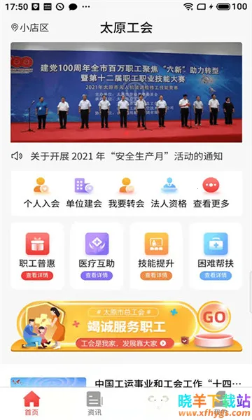太原工会APP是太原市总工会推出的移动服务端,功能超丰富!能提供问题、活动、教育培训、普惠服务、法律咨询、帮扶救助、新闻阅读、婚恋交友等实在服务。在这里,你能随时知晓国家大事、身边小事,特色内容及时呈现。工会干部和会员办理业务超方便,入会、转会、建会申请、法律咨询援助申请等都能随时随地搞定。还有超多关爱员工的多维服务,像超市低折扣、免费观影、文艺演出抢票、优惠送餐、外卖优惠、免费打球、挂号补助等。它整合生活服务资源,提供工会小知识,加强了职工间的交流。有了它,就像有了一个贴心的网上职工之家,让你享受指尖工会的便捷高效服务,轻松掌握职工生活,随时获取所需,超实用!