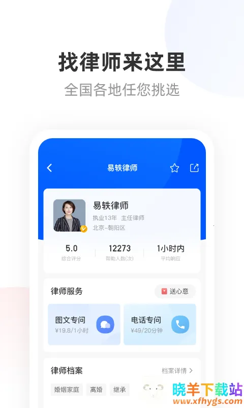 它功能超丰富,有快速图文和电话咨询,能让你随时和律师沟通;还能在线检索各大领域法律知识,帮你快速查疑解惑。平台覆盖离婚、劳动、交通事故等多种法律服务场景,不管是生活、工作还是家庭方面的法律问题都能解决。
